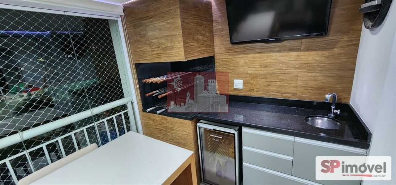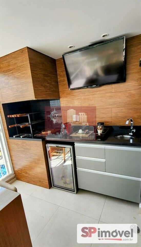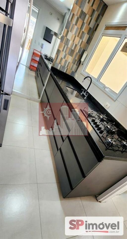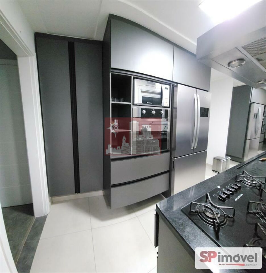 Cozinha equipada com torre quente e armários sob medida;